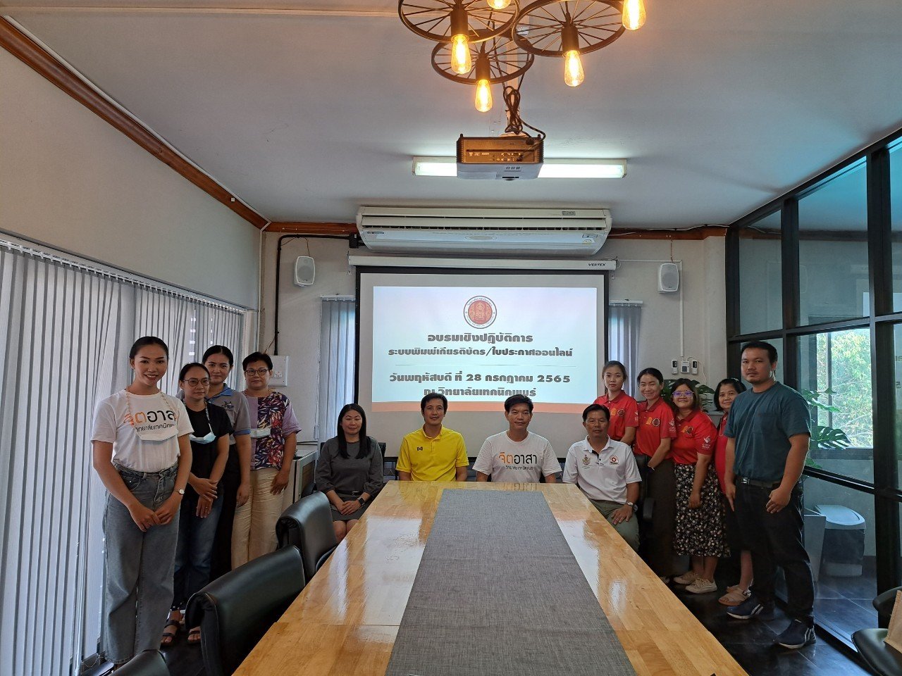 ผู้อำนวยการ อัศวิน ข่มอาวุธ ผู้อำนวยการวิทยาลัยเทคนิคแพร่ ได้มอบหมายให้ ครู และบุคลากรทางการศึกษาของวิทยาลัยฯ เข้าร่วมอบรมการใช้งานระบบพิมพ์เกียรติบัตร/ใบประกาศออนไลน์