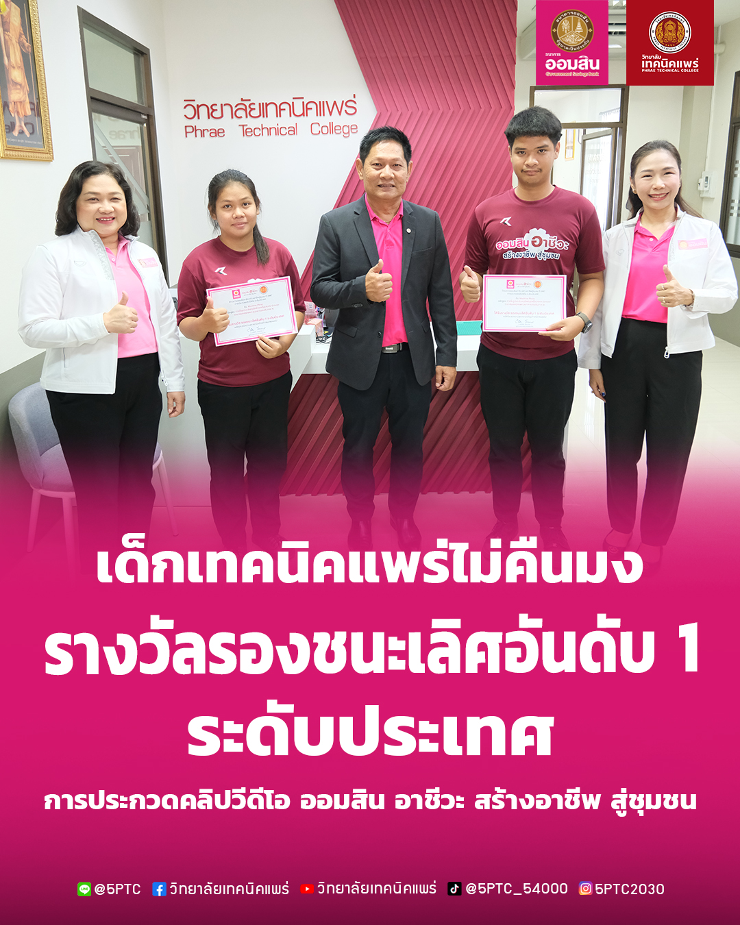 ขอขอบพระคุณ ธนาคารออมสิน ธนาคารออมสินภาค 9 ธนาคารออมสินเขตแพร่ ที่ให้การสนับสนุนวิทยาลัยเทคนิคแพร่
