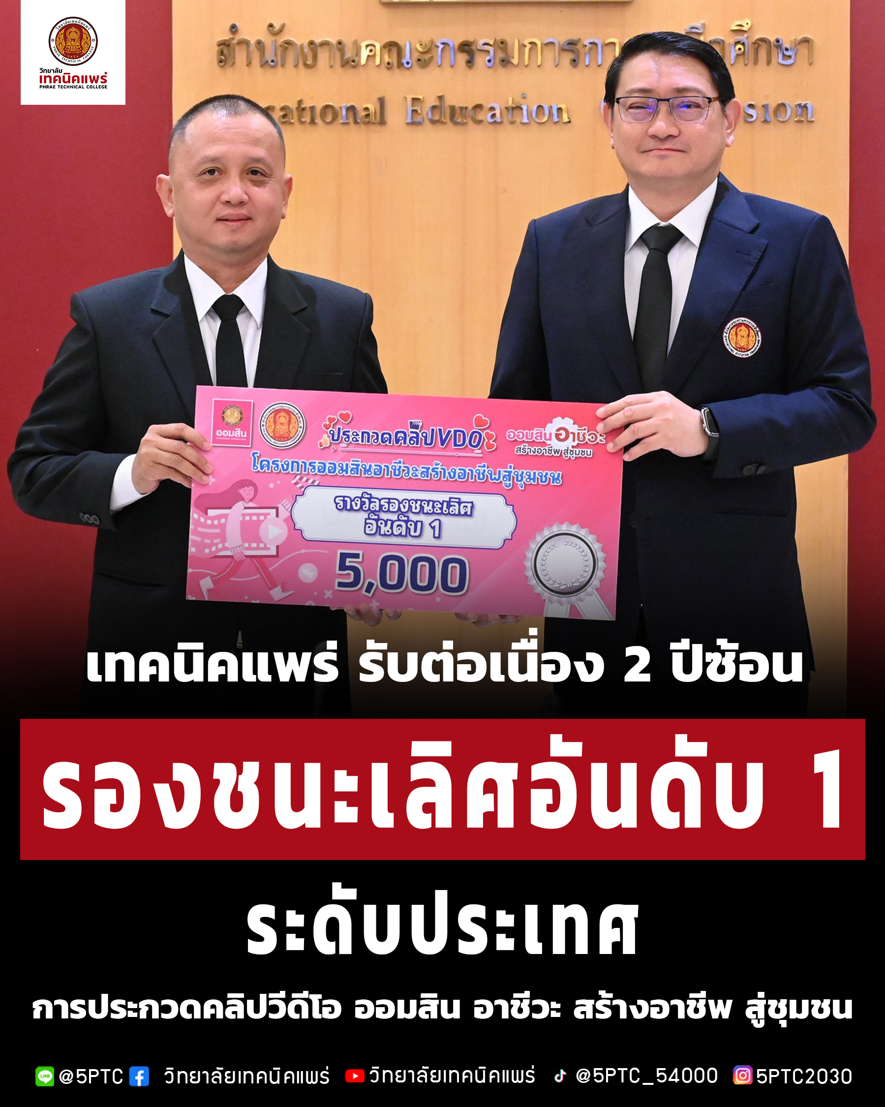 วิทยาลัยเทคนิคแพร่ โดยนักเรียน นักศึกษา แผนกช่างยนต์ ส่งผลงานคลิปวีดีโอเข้าร่วมประกวดในโครงการออมสิน อาชีวะ สร้างอาชีพ สู่ชุมชน ปี 2568 ระดับประเทศ